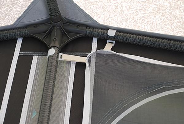 Die Lösung für „heiße“ Tage! Die neue Isabella Netzfront wird einfach im Gestänge hinter der Vorderwandhälfte mit Klammern verspannt und kann bietet somit eine große Ventilationsmöglichkeit ohne lästige Mücken.