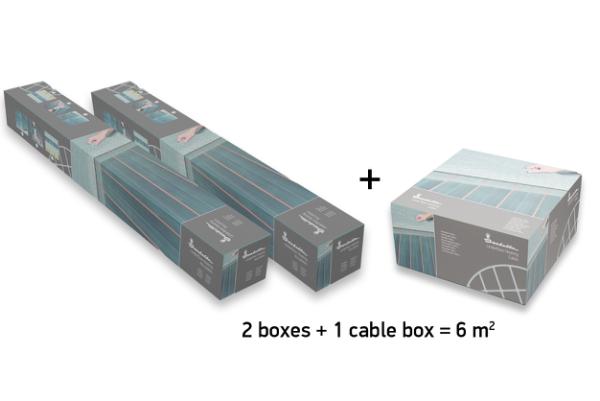 1 x câble chauffant de 6 m2 (ajoutez deux boîtes au panier) + 2 x plaques en aluminium pour 3 m2 de sol (ajoutez une boîte au panier)