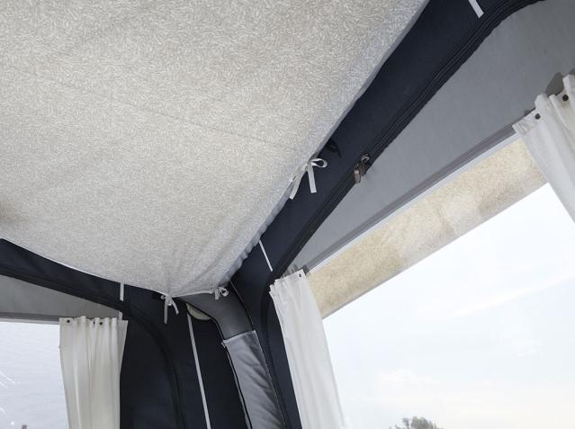 Le vélum de protection aide à réduire la condensation. Recommandé pour le camping pendant les saisons rudes. Se fixe avec les crochets Termo-Fix, disponible pour les auvents Penta, Universal et d’hiver.
