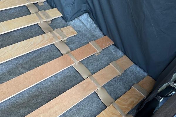 Vous avez envie de dormir encore plus confortablement dans votre Camp-let ? Un sommier à lattes vous offre un grand confort et permet de ventiler l'espace sous le matelas. Il réduit la formation de condensation et vous évitez que votre matelas ne devienne humide.