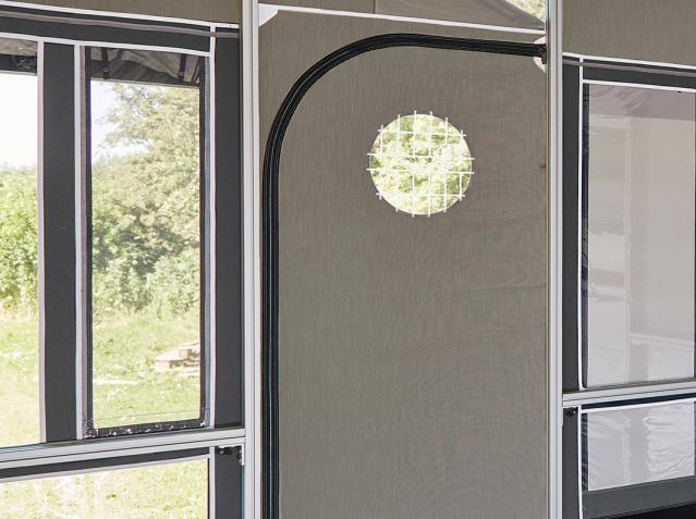 La paroi arrière du VILLA peut être ajustée pour s'adapter aux caravanes de toutes tailles. Ceci est la garantie d'un ajustement serré et précis et vous permet d'utiliser l'auvent en pose libre sans caravane.