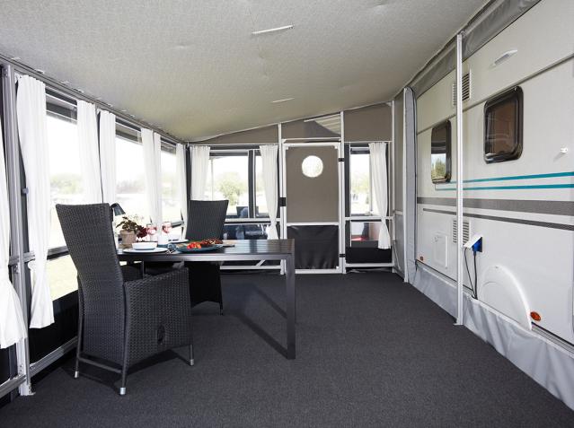 En fonction de l'espace dont vous avez besoin, vous pouvez choisir entre VILLA 300 avec une profondeur de 3 mètres et VILLA 370 avec une profondeur de 3,7 mètres. Vous avez également le choix entre 5 longueurs de 550 à 950 cm, qui s'adaptent à votre caravane et à votre emplacement de camping permanent.