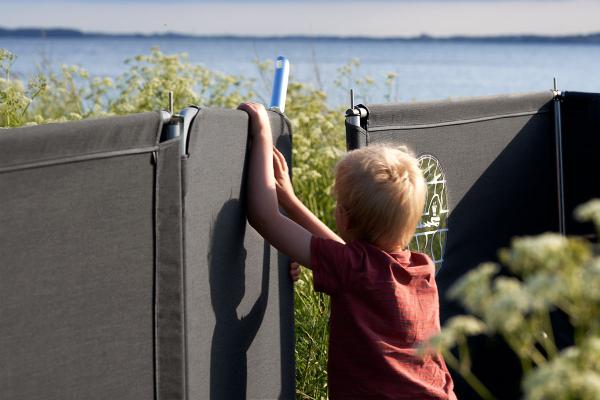 Acquisto aggiuntivo: Il cancello viene normalmente installato tra due porte frangivento, ma se vuoi posizionarlo contro il tuo caravan o la tua veranda, avrai bisogno di un palo di sostegno per completare il set. Puoi scegliere tra il palo di sostegno Mega(900000118) o il palo di sostegno CarbonX(900000119).