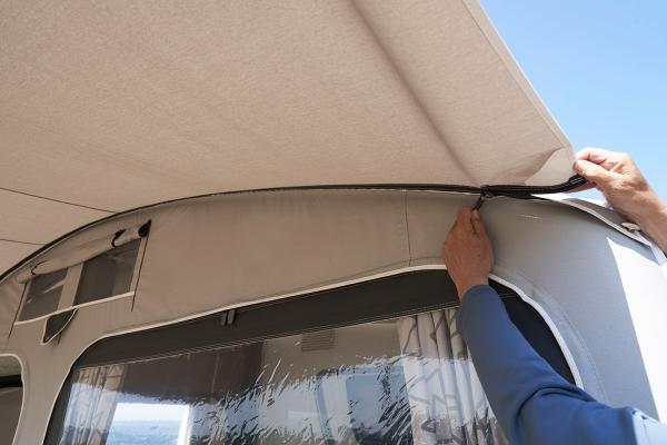 soltak en enkel lösning. Soltaket fästs med dragkedja och tre lätta glasfiberstänger