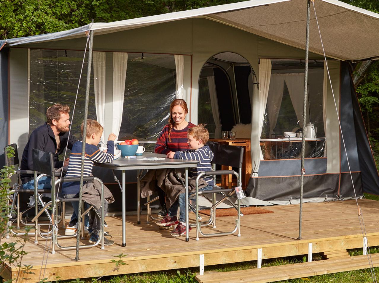 - Die Zelte sind mit einer kleinen Küche mit Kühlschrank, Wasserkocher, Küchengrundausstattung und Geschirr ausgestattet. Es gibt einen Esstisch und eine kleine Sofagruppe. Die 4 Schlafplätze sind mit Bettdecken und Kissen ausgestattet.