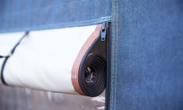 Isacryl-Gewebe in den Vorder- und Seitenwänden sorgt, in Verbindung mit dem einseitig beschichtetem Dach (Textilunterseite), fu¨r ein gutes Raumklima.