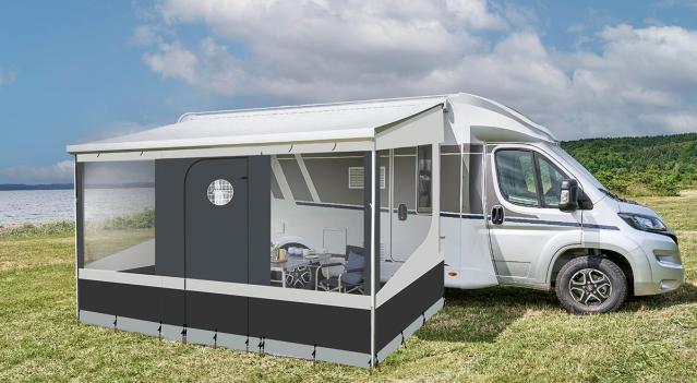 Buddy er et slidstærkt og stilfuldt markisetelt designet til at montere på campingvognens/køretøjets markise for både at skabe læ og skygge uden for campingvognen/køretøjet.