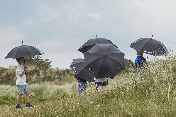 Din bedste ven i regnvejr. Denne lækre sorte paraply med en diameter på 106 cm er det perfekte regntilbehør til campingferien.