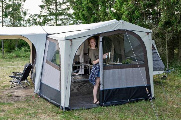 Do you have a kitchen in your Camp-let? Then this side tent comes in handy. It works perfectly as a covered kitchen area so you can prepare meals without worrying about the weather. The side tent can also be used as extra sleeping space, a dining area or extra storage space.