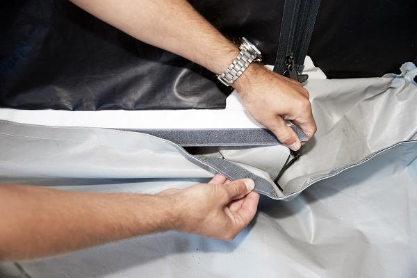 Thick PVC base with high edges for your Camp-let Basic, 2GO or Dream. Easy to attach using hook and hoop fasteners.