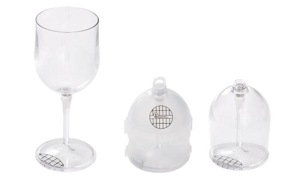 2 smart collapsible wineglasses in 100% transparent polycarbonate - ideal for a camping trip, festival or a cosy picnic. They fold easily by removing the base and placing it inside the glass, where they are held securely together with a magnet. This makes them easy to store. The glasses are not dishwasher safe and not microwave safe.
