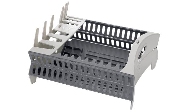 The dish rack folds down easily to become completely flat.