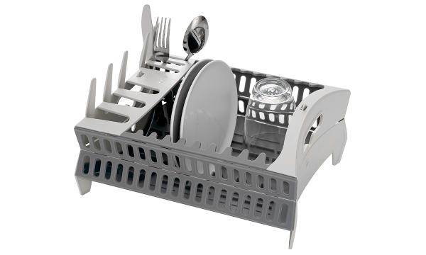 Isabellas dish rack was designed based on the “think flat” concept and is an innovative, practical and space-saving product, ideal for outdoor living. The dish rack folds down easily to become completely flat, so it takes up minimal storage space. Thanks to the fixed base, water will not run out while the washing-up is drying. The stand has handles to make it easy to move around – even when full of dishes.