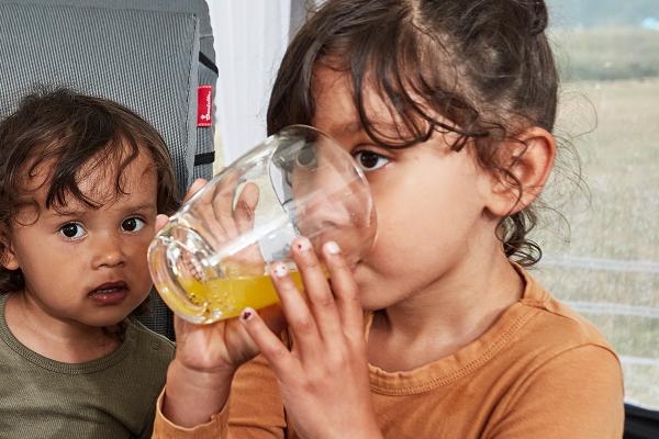 A nice thick drinking glass, with good stability. The glass is made of transparent polycarbonate 100%.