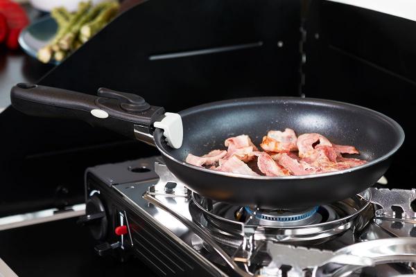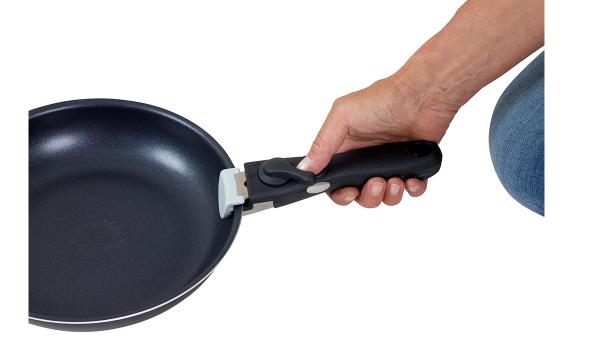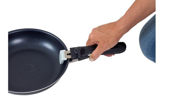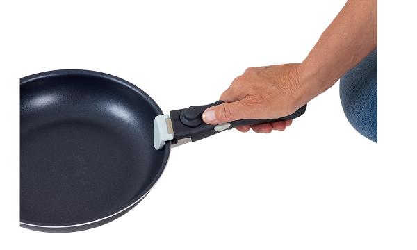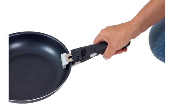 The handles are easy to mount by turning the lock to the side. They are equipped with a double safety lock to ensure that they do not accidentally open. They fit both pots and pans and can be easily swapped between them.