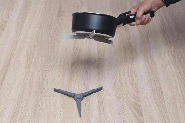 The trivet is magnetic, too, and stays attached when you lift the pan. It is made of silicone – a non-slip material that ensures that your pots and pans remain in place on the table.