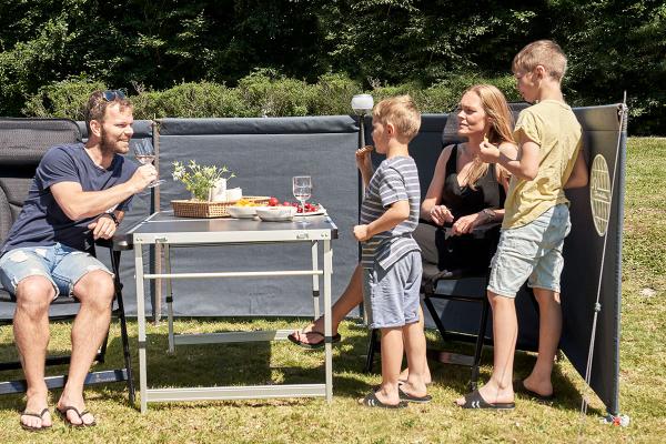 The windbreak is made from the fibre-dyed 295 g/m2 Isacryl, which is also used in our Isabella awnings. It ensures a long service life, retains its colours in sunlight and is a breathable material. CarbonX lightweight poles make the windbreak both stable and incredibly easy to transport and carry on the go, as it weighs only 6 kg. Perfect for travelling campers who want a lightweight and flexible windbreak.