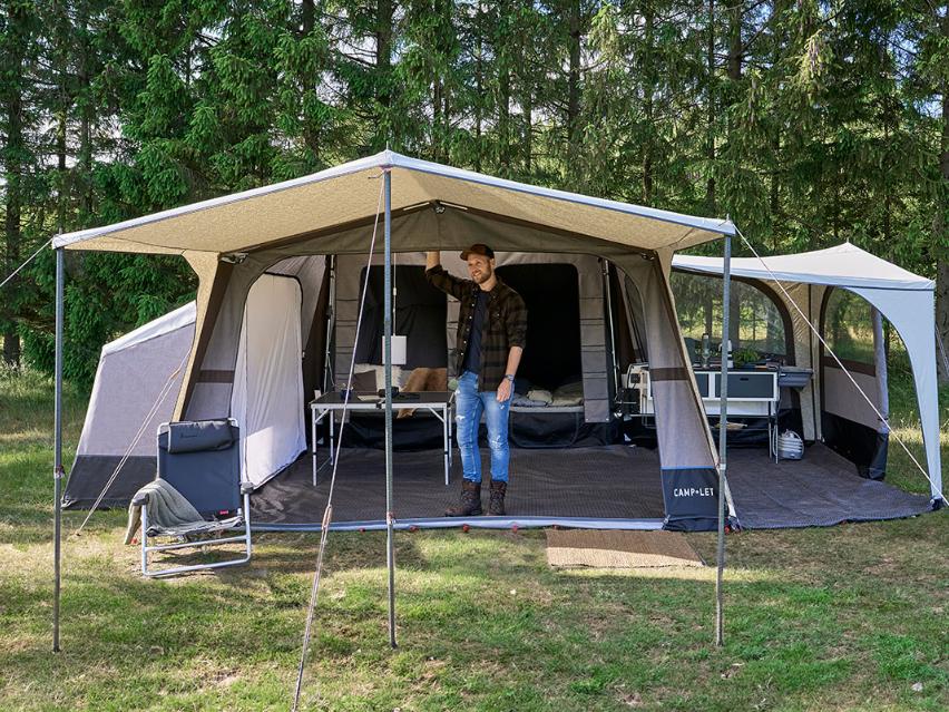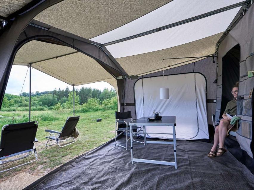 Camp-let Earth offers endless possibilities for customisation. With its modular design and easy-to-use zip system, you can easily add extra modules to suit your needs. Whether you want extra sleeping space, a spacious kitchen awning or simply more living space, you can easily expand your Camp-let Earth.