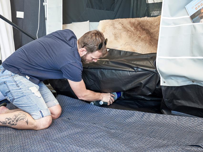 It only takes 15 minutes to set up a Camp-let North. The Camp-let tent trailer is not only easy to bring along on the road, but also quick and easy to pitch. The living room and sleeping cabins are easily set up in a single action.