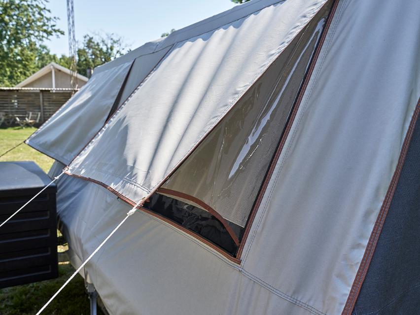 Camp-let North is designed with windows and ventilation all the way around the tent, providing good ventilation options. All windows have integrated mosquito nets and elegant light-coloured curtains.