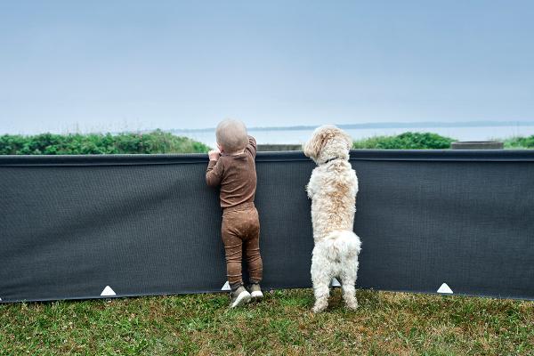 Met een hoogte van maar 67 cm vormt het Mini windscherm een veilige barrière die kleine kinderen en honden binnen een afgebakend gebied houdt, terwijl je er gemakkelijk overheen kunt stappen zonder dat er een deurdeel nodig is. Het Mini windscherm kan ook worden gebruikt in combinatie met een Isabella windscherm van standaardhoogte, zodat je een complete oplossing hebt waarmee je kunt genieten van beschutting tegen de wind en een vrij uitzicht op je omgeving.