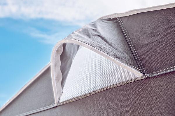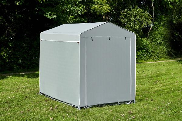 Isabella Space er et romslig og stabilt oppbevaringstelt. Det er ideelt for fastliggere som trenger ekstra lagringsplass til sykler, hagemøbler, grill og annet utstyr.