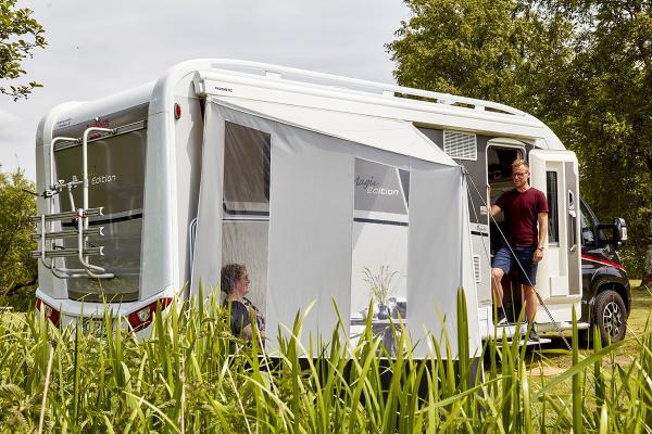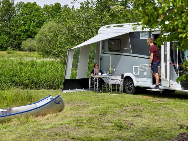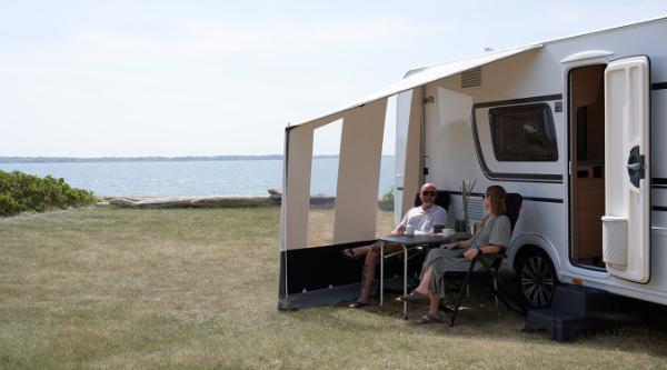 Skap et koselig og skjermet hjørne med Cosy Corner Levo. Perfekt for en stille stund i skyggen eller en avslappende kaffepause foran campingvognen, bobilen eller bybobilen. Cosy Corner Levo er designet for å være ekstremt enkelt å sette opp - det kan stå med bare en enkelt stang og flyttes langs campingvognskinnen eller markiseskinnen for optimal plassering.