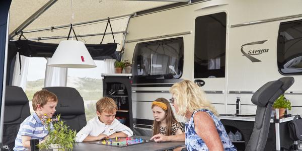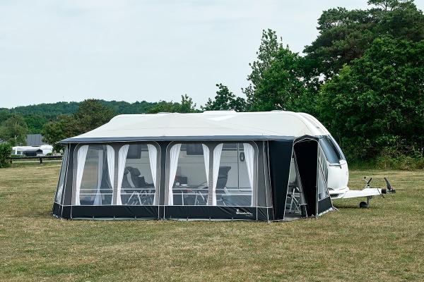 Penta Etna, ett förtält som har allt du kan önska av ett långliggarförtält. Med ett djup på 3,50 m, utan besvärande mittstång, och den femkantiga formen, är det lätt att utnyttja hela utrymmet.