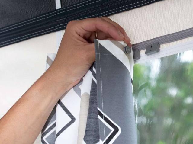 The curtains in the awning are printed through to ensure a neat finish on both sides, so you can turn the curtains any way you want. In addition, the curtains are specially impregnated to protect against dirt and mould.