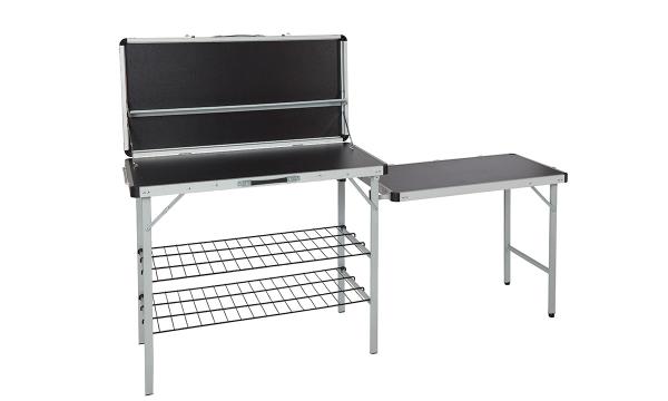 Made for outdoor cooking. The kitchen can quickly be folded completely flat, taking up minimal space.
